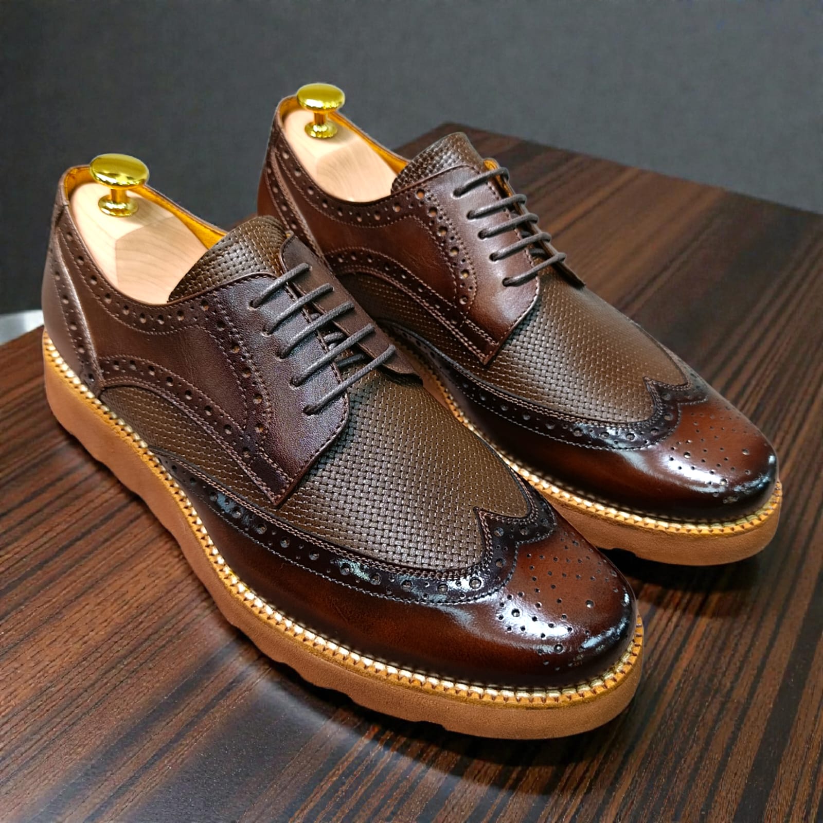 “Zapato casual en cuero premium con suela marron extra ligera. Versátil, moderno y cómodo: ideal para combinar con cualquier estilo, de lo formal relajado a lo diario.”