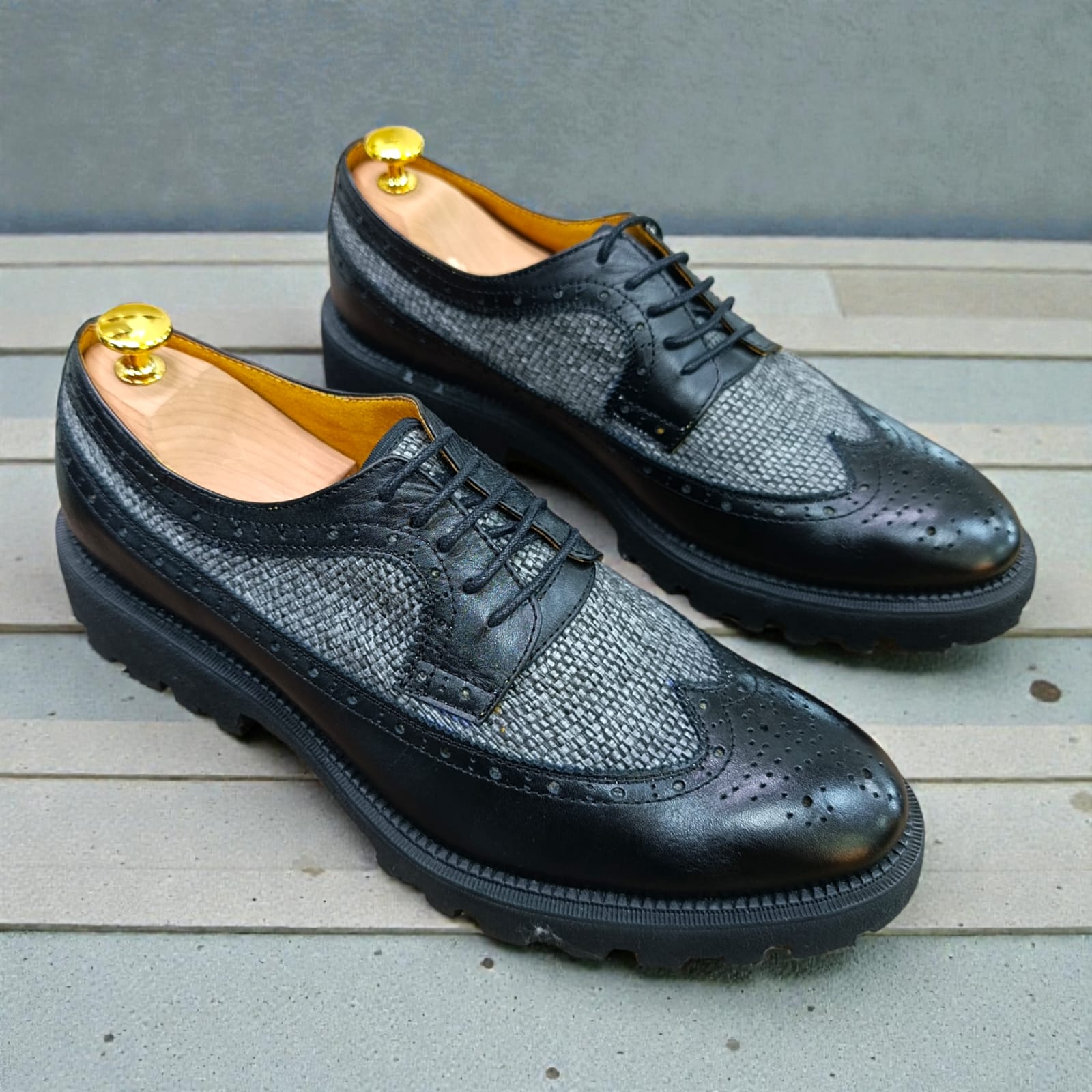 Un Derby confeccionado a mano en cuero premium, reconocido por su diseño de amarre abierto que ofrece confort, practicidad y un ajuste perfecto al pie. Su horma estilizada italiana aporta una silueta elegante que funciona tanto para looks ejecutivos como para estilos casuales con un toque de distinción.
