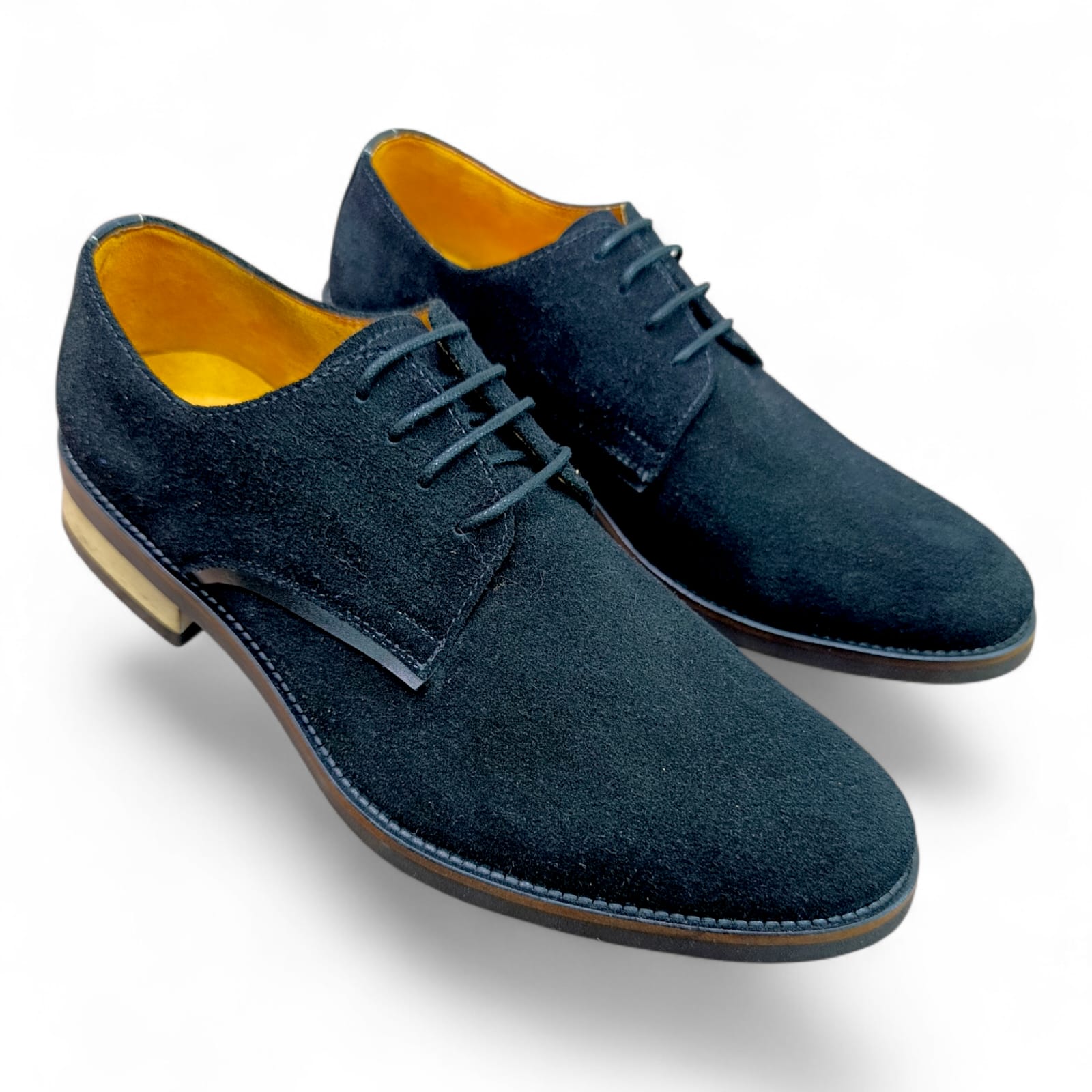 El Derby Gamuza Negro Tipo I está confeccionado en gamuza premium, ofreciendo una textura suave, mate y sofisticada que aporta un toque moderno a la silueta clásica del Derby. Su color negro profundo lo convierte en un modelo versátil, sobrio y perfecto para looks ejecutivos o casual-formales.