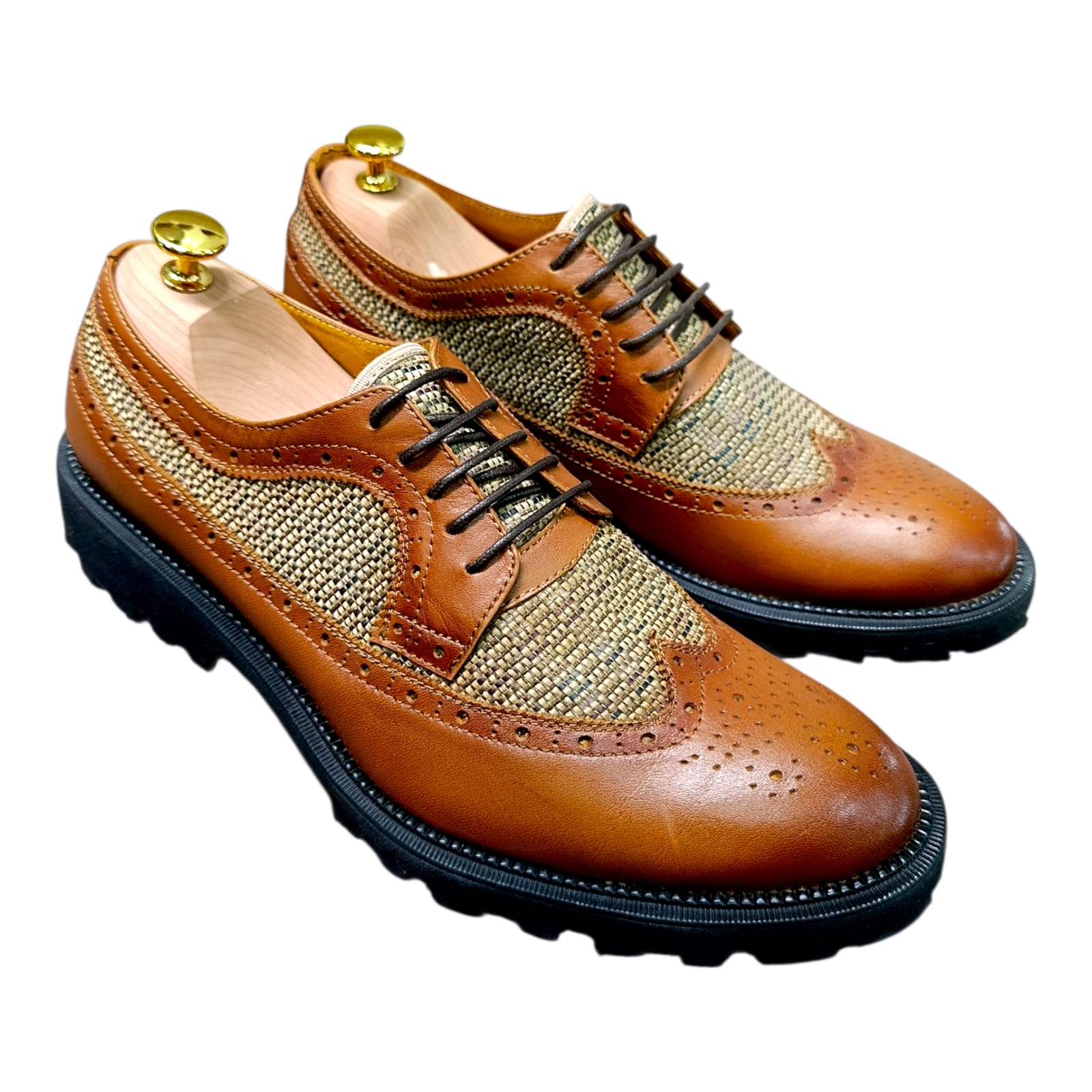 El Derby Textil Dos combina cuero premium con paneles textiles, logrando un diseño ligero, fresco y visualmente distintivo. La mezcla de materiales aporta textura, contraste y un estilo contemporáneo sin perder la esencia clásica del modelo Derby.