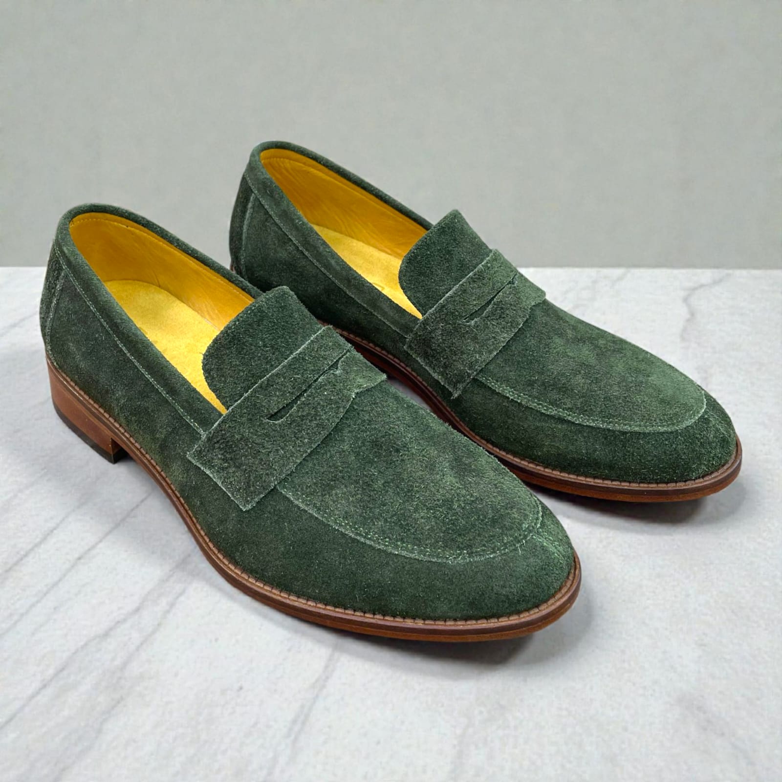 Un diseño fresco y sofisticado que aporta personalidad y estilo. El Mocasín en gamuza verde está elaborado 100% en cuero gamuzado, ofreciendo una textura suave y un acabado elegante. Su diseño cómodo y ligero lo convierte en una opción ideal para un look casual refinado, manteniendo siempre una presencia distinguida. Perfecto para quienes buscan un calzado versátil, exclusivo y con un toque moderno.