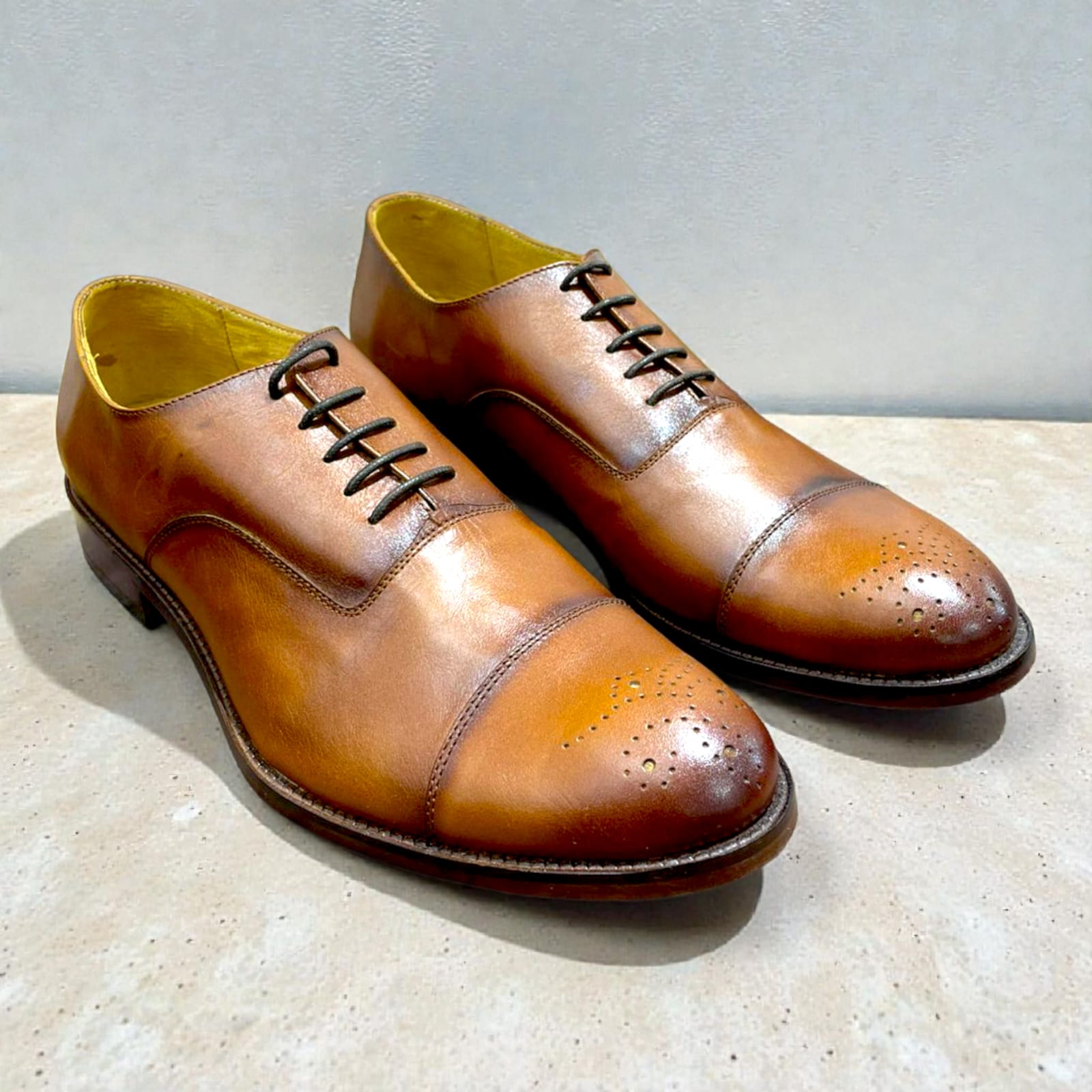 Oxford confeccionado en cuero genuino tono miel, trabajado artesanalmente en más de 277 pasos para lograr un acabado refinado, resistente y de alta presencia. Su diseño clásico aporta elegancia y versatilidad, ideal para atuendos ejecutivos y ocasiones formales.